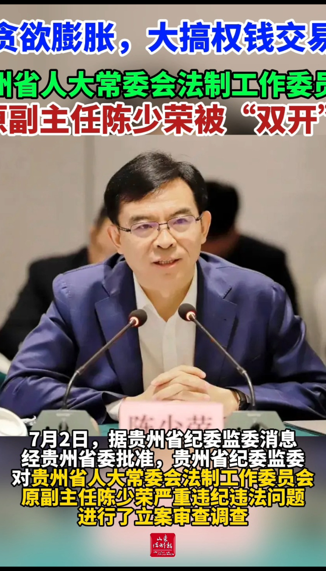 7月2日,据贵州省纪委监委消息,经贵州省委批准,贵州省纪委监委对贵州省人大常委会法制工作委员会原副主任陈少荣严重违纪违法问题进行了立案审查调查。