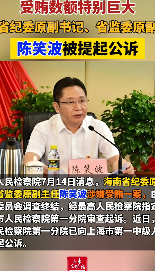 受贿数额特别巨大 海南省纪委原副书记、省监委原副主任陈笑波被提起公诉