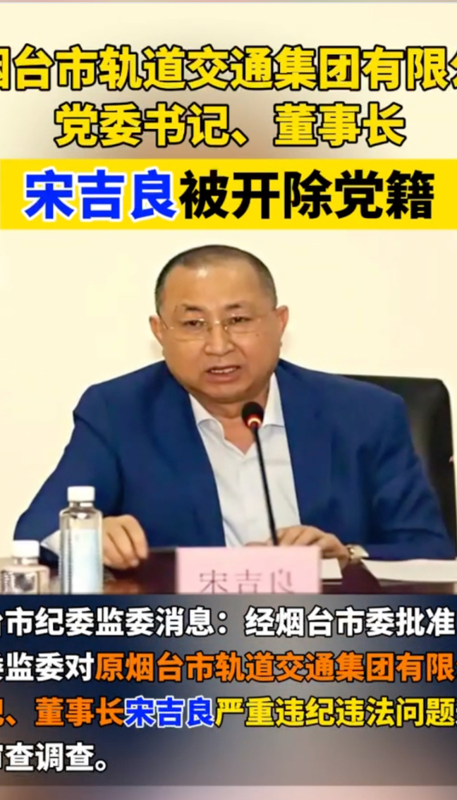 据烟台市纪委监委消息:经烟台市委批准,烟台市纪委监委对原烟台市轨道交通集团有限公司党委书记、董事长宋吉良严重违纪违法问题进行了立案审查调查。