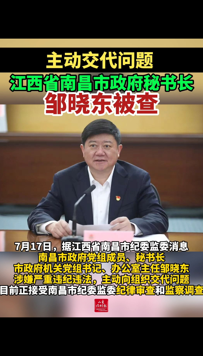 7月17日,据江西省南昌市纪委监委消息,南昌市政府党组成员、秘书长,市政府机关党组书记、办公室主任邹晓东涉嫌严重违纪违法,主动向组织交代问题,目前正接受南昌市纪委监委纪律审查和监察调查。