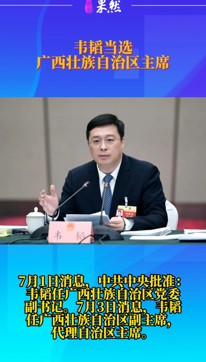 观政视频|韦韬当选广西壮族自治区主席 2025-07-18 原创齐鲁晚报·齐鲁壹点客户端 微信扫码扫码下载客户端7月18日上午,广西壮族自治区第十四届人民代表大会第四次会议在广西人民会堂召开。经大会无记名投票选举,韦韬当选为广西壮族自治区主席。