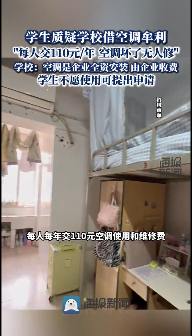 主播说丨学生质疑学校借空调牟利,“每人每年交110元 空调坏了无人修”海报新闻 | 2025-07-29 原创大众新闻·海报新闻 微信扫码扫码下载客户端海报新闻记者 黄晓荣 张光 张坤 实习生 李亚楠 报道