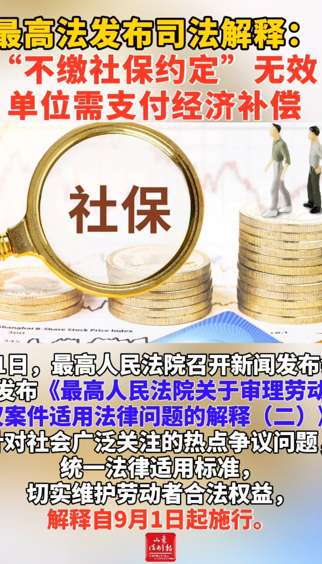 最高法发布司法解释:“不缴社保约定”无效 单位需支付经济补偿