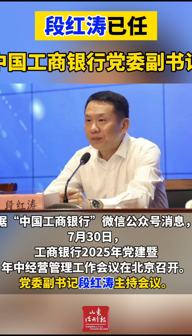 段红涛已任中国工商银行党委副书记 曾在山东任职