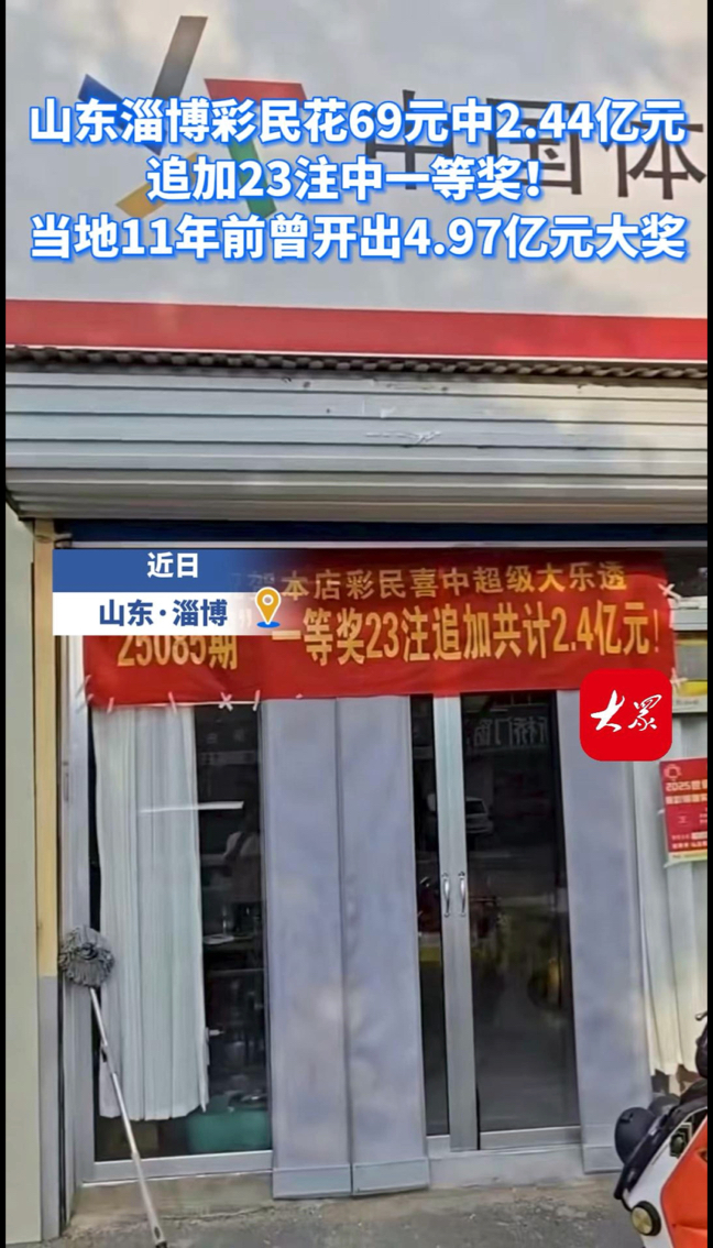 热点|山东淄博彩民花69元中2.44亿元,追加23注中一等奖,当地11年前曾开出4.97亿元大奖