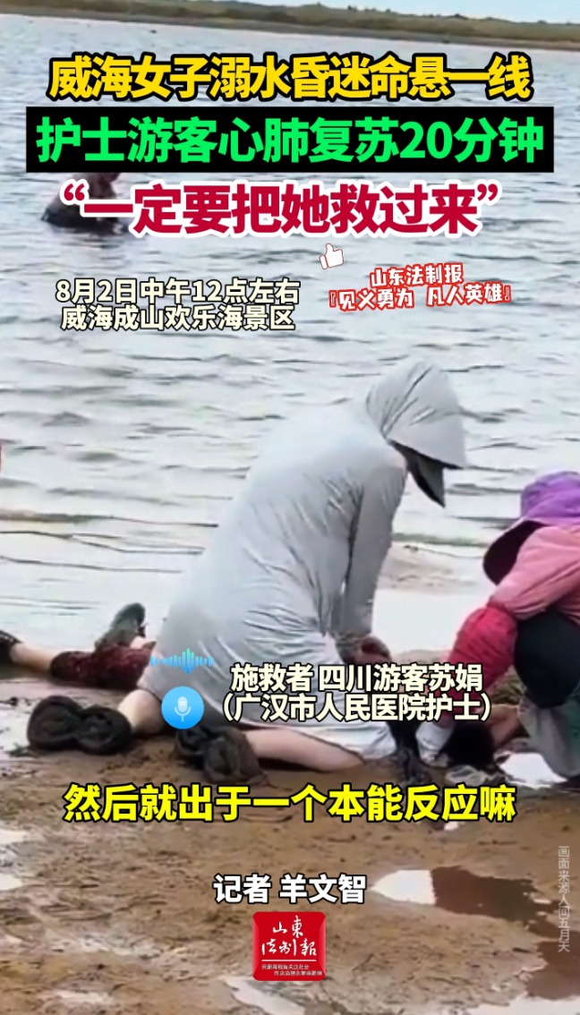 威海女子溺水昏迷命悬一线,护士游客心肺复苏20分钟:“一定要把她救过来”