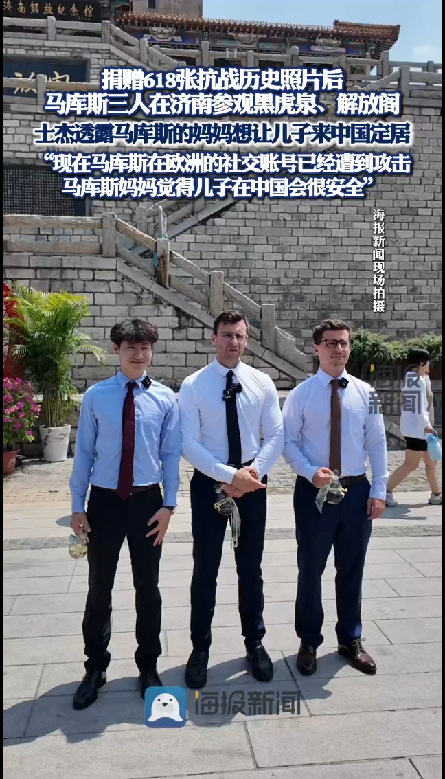 捐赠618张抗战历史照片后,马库斯三人在济南参观黑虎泉、解放阁,士杰透露马库斯的妈妈想让儿子来中国定居海报新闻 | 2025-08-11 原创大众新闻·海报新闻 微信扫码扫码下载客户端(大众新闻·海报新闻记者 朱晓冲 报道)