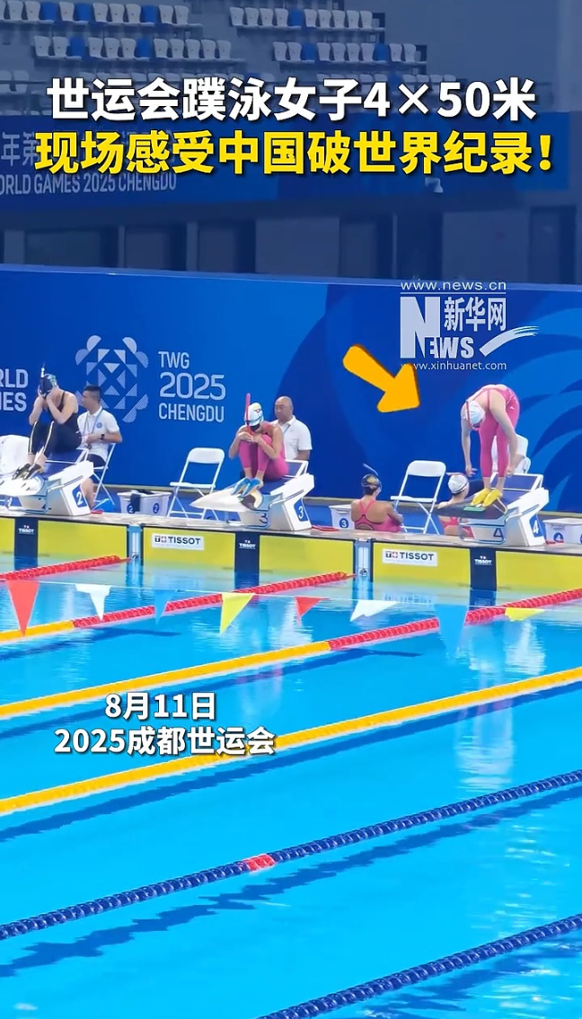 现场感受世运会中国女子蹼泳项目破世界纪录!温馨提示:观看可以呼吸