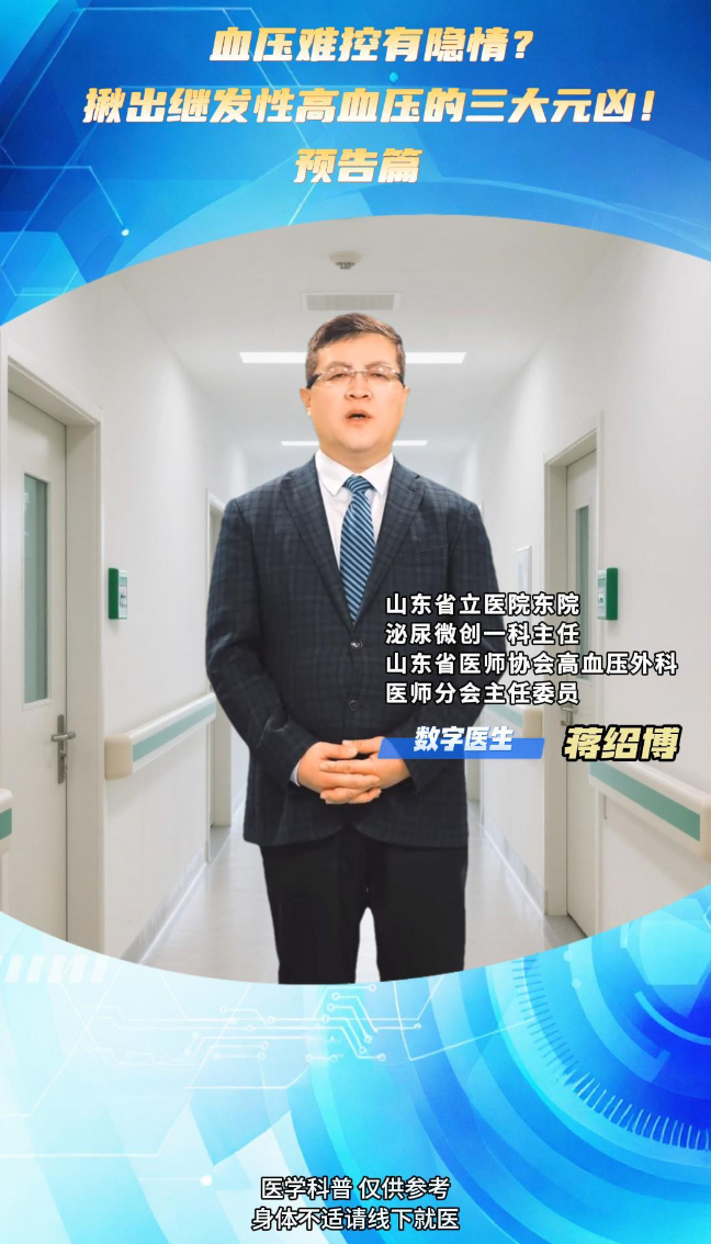大家好,我是山东省立医院东院泌尿微创一科蒋绍博,经常有患者问我:“蒋医生,我每天按时吃降压药,为什么血压还是居高不下?”