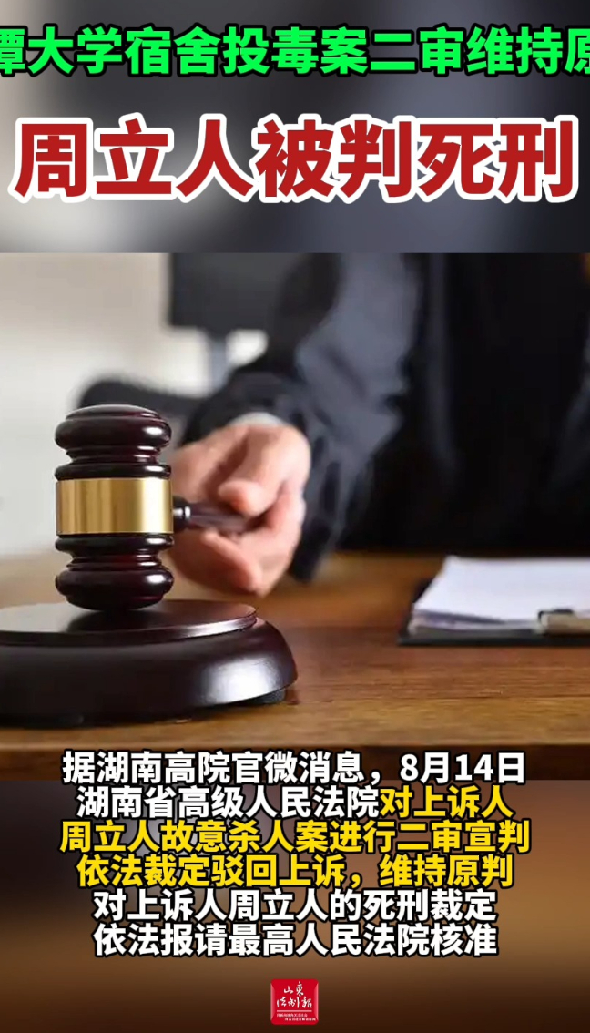 湘潭大学宿舍投毒案二审维持原判,周立人被判死刑