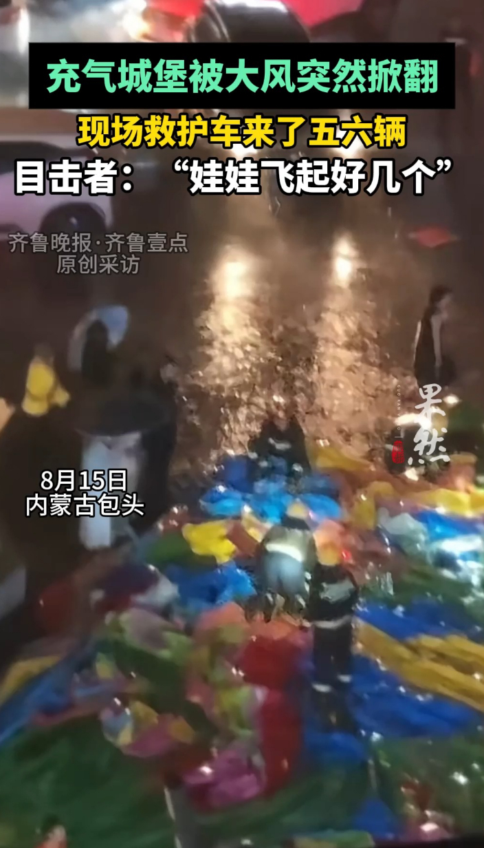 果然视频|包头一充气城堡被突发大风掀翻,数名儿童被压齐鲁壹点 | 2025-08-16 原创齐鲁晚报·齐鲁壹点客户端 微信扫码扫码下载客户端8月15日晚8时许,内蒙古包头市萨拉齐镇七星国际附近突发强风,导致一室外充气城堡被掀翻,数名正在玩耍的儿童被压。(齐鲁晚报·齐鲁壹点记者 周静)