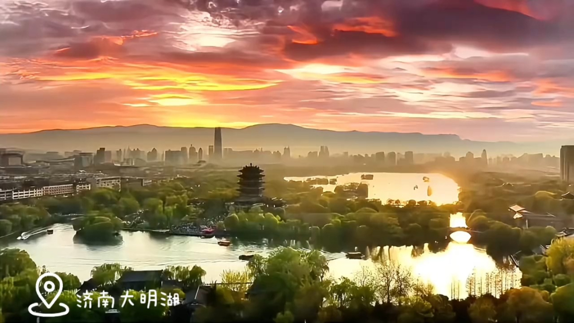 当夕阳吻上湖面,碎金铺满水波——山东的湖,把秋天的温柔藏进了暮色里。