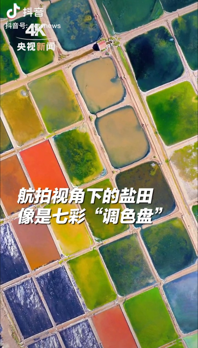 太美了!航拍视角下的盐田,像是七彩“调色盘”。网友:大地的颜料盒。