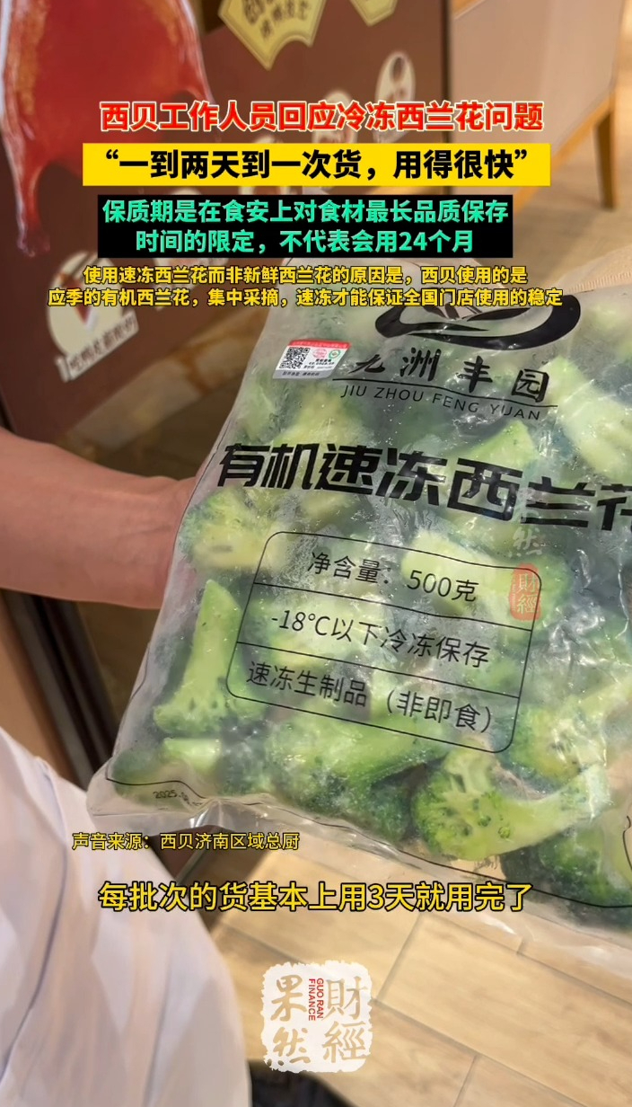 果然财经|西贝解答冷冻西兰花问题:保质期长不代表使用日期长