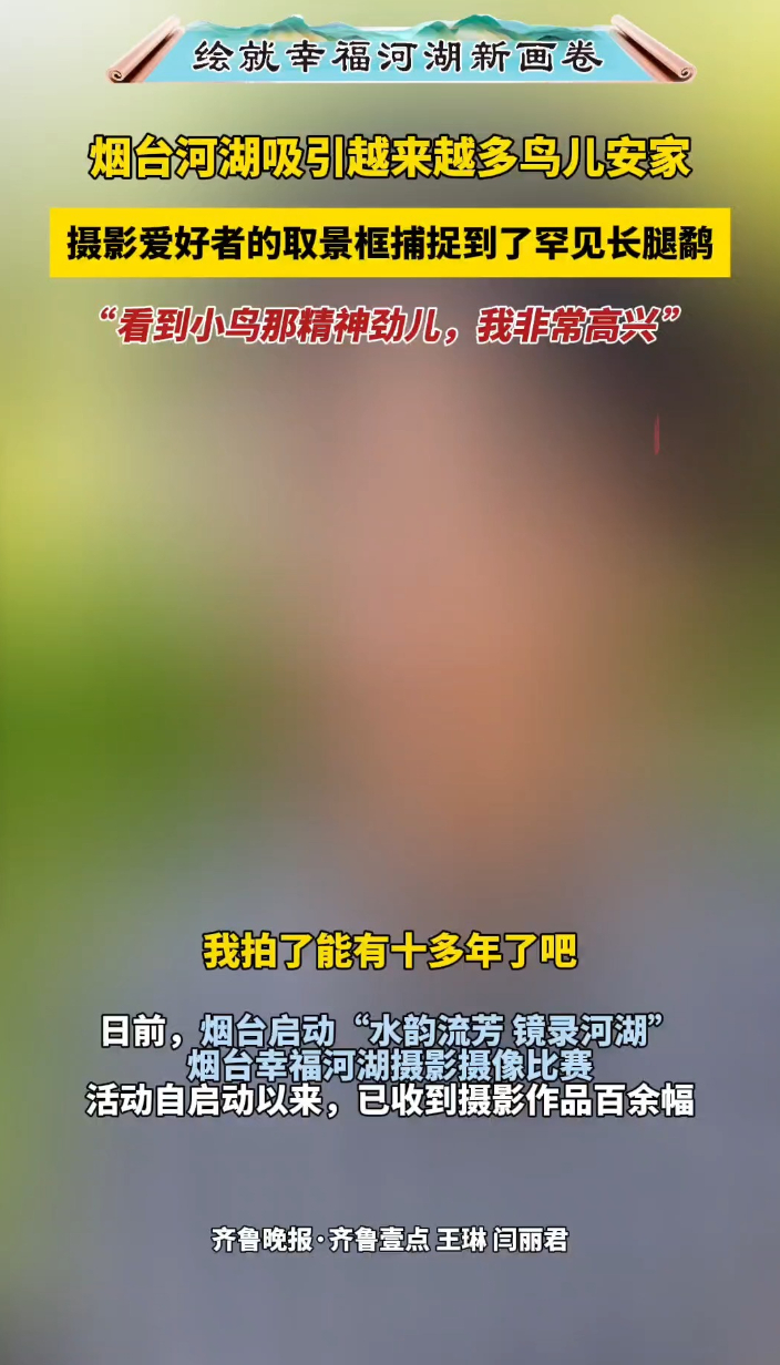 日前,烟台启动“水韵流芳 镜录河湖”烟台幸福河湖摄影摄像比赛,该活动已收到摄影作品百余幅。在摄影爱好者杨建民的取景框中,鸟儿是最好的环境测评师,“近两年,烟台的河湖环境有了明显改善,引得各种鸟也都来了。以逛荡河为例,以前常见的也就两三种鸟,这两年整治后,多了好几样鸟,对活动区域水质环境要求很高的长腿鹬就是其中之一,最近几天吸引了不少摄影家前去拍摄。”(齐鲁晚报·齐鲁壹点 王琳 闫丽君)