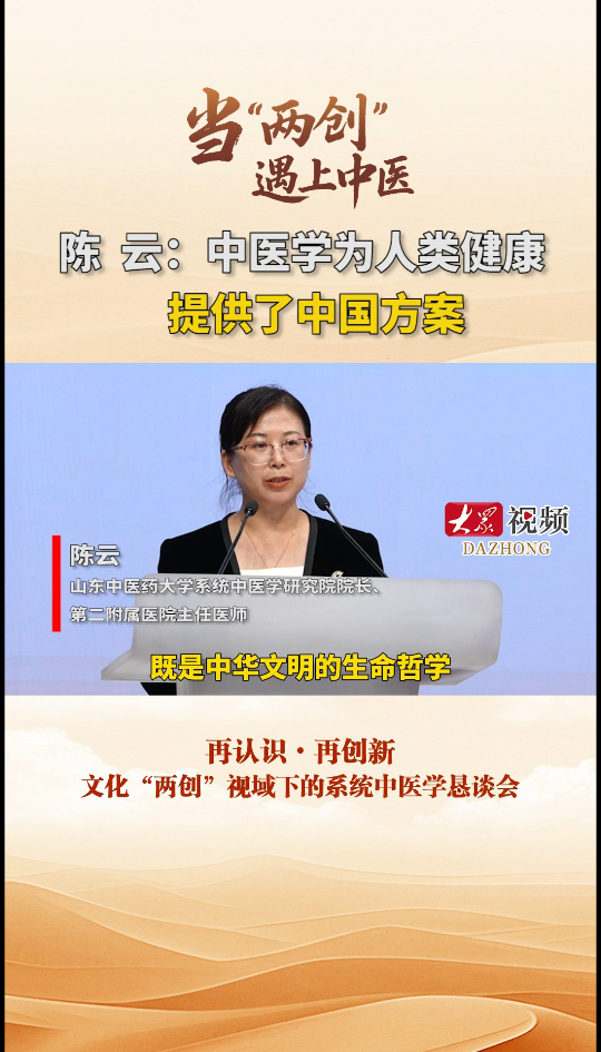 9月29日下午,再认识·再创新:文化“两创”视域下的系统中医学恳谈会在北京举办。当下自然科学高度发达,如何让中医被当代人认知理解、被世界了解接受,推动其与自然科学更好融通、相互支撑,以开创中医现代化新气象,服务全生命周期健康、助力强国复兴与人类命运共同体,需深入探究、守正创新。山东中医药大学系统中医学研究院院长、第二附属医院主任医师陈云在会上发言,她表示:系统中医学的使命在于它是融合自然生态与人文伦理的整体性系统智慧,这种智慧既是中华文明的生命哲学,也为人类未来的健康途径提供了深具启示的中国方案。(大众新闻记者 谢巨洋 张子良 高广超 耿俊逸)