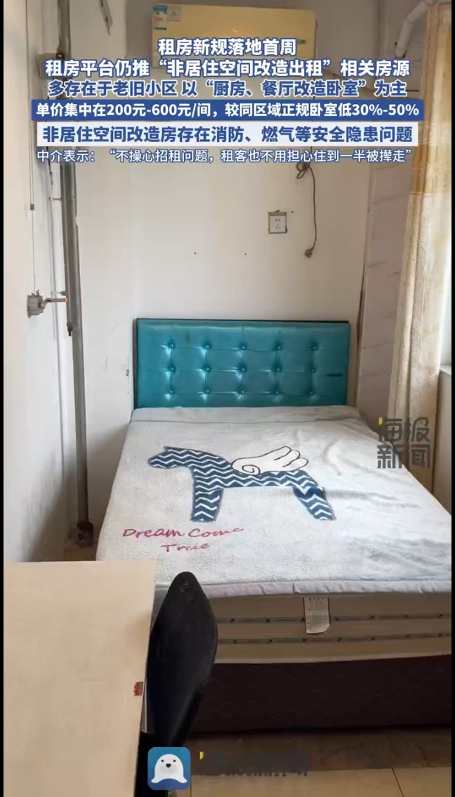 新规落地首周,记者以“合租”租客身份,从贝壳找房、安居客等平台上找出了多个“改造房”房源,这些房源中,多以“厨房、餐厅改造卧室”为主。同一天,记者在房产中介经纪人张先生和托管公司二房东李先生的带看下,实地“看房”调查。