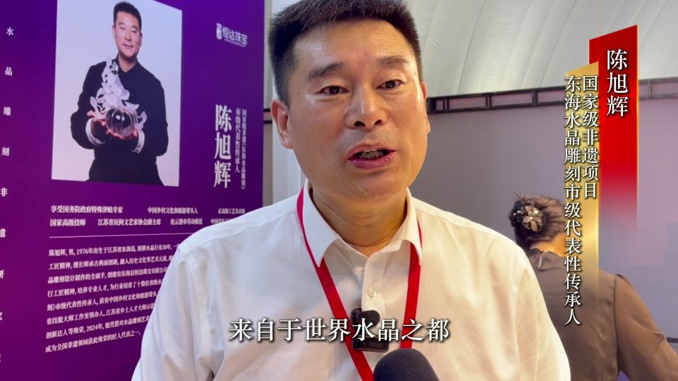 “择一事,爱一生。我现在把自己最喜欢的水晶带到淄博,希望和淄博陶琉产业做一个交流学习,把好的水晶带给淄博朋友。”陈旭辉是国家级非遗项目东海水晶雕刻市级代表性传承人。