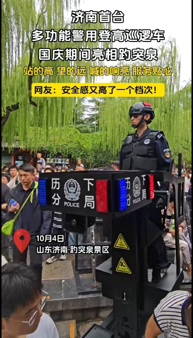 国庆期间济南首台多功能警用登高巡逻车亮相趵突泉
