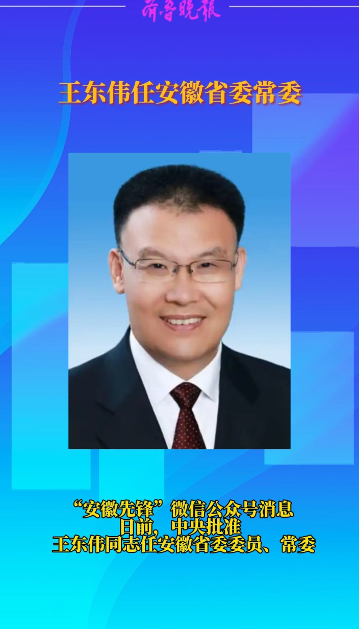 观政视频|财政部副部长王东伟履新安徽省委常委 2025-10-16 原创齐鲁晚报·齐鲁壹点客户端 微信扫码扫码下载客户端“安徽先锋”微信公众号消息,日前,中央批准:王东伟同志任安徽省委委员、常委。王东伟曾任财政部党组成员、副部长等职。