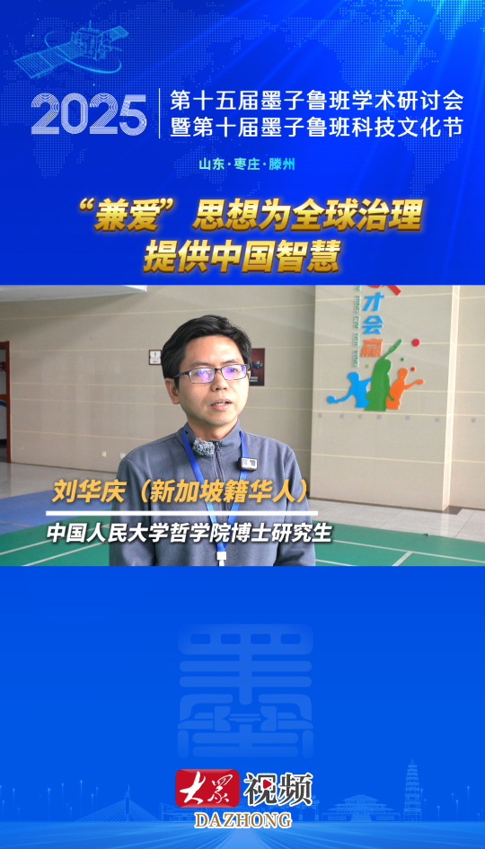 “墨班”文化论|刘华庆:“兼爱”思想为全球治理提供中国智慧大众新闻客户端 2025-10-18原创第十五届墨子鲁班学术研讨会于10月17日至19日在山东滕州举行,会议围绕墨子鲁班文化遗产与当代科技人文融合展开深度讨论。会议期间,中国人民大学哲学院博士研究生刘华庆(新加坡籍华人)表示,在国际局势面临新变局的今天,墨子“兼爱”“非攻”的理念,恰恰为探寻一条人类彼此共荣共存的光明大道提供了关键启示,是值得全球深入聆听的中国古典智慧。(大众新闻记者 张子良 蓝天 策划 马玉峰)