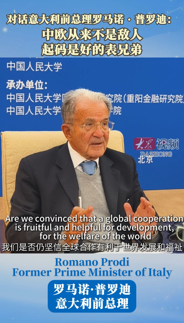 意大利前总理罗马诺·普罗迪:中欧从来不是敌人,起码是好的表兄弟大众新闻 10-20原创10月17日,“明德战略对话(2025)”在中国人民大学举行。来自美国、英国、俄罗斯、意大利、德国等多国的前政要、知名学者及媒体代表齐聚一堂,共同探讨世界变局下的全球治理、技术革命与人类未来发展新路径。大众新闻记者对话意大利前总理、欧盟委员会前主席罗马诺·普罗迪。(大众新闻记者 吕乐 董婉婉 刘玉凡 王雅洁 实习生 宋妍)