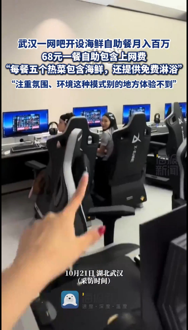 武汉一网吧开设海鲜自助餐月入百万:出来上网注重氛围、环境,这种模式别的地方体验不到