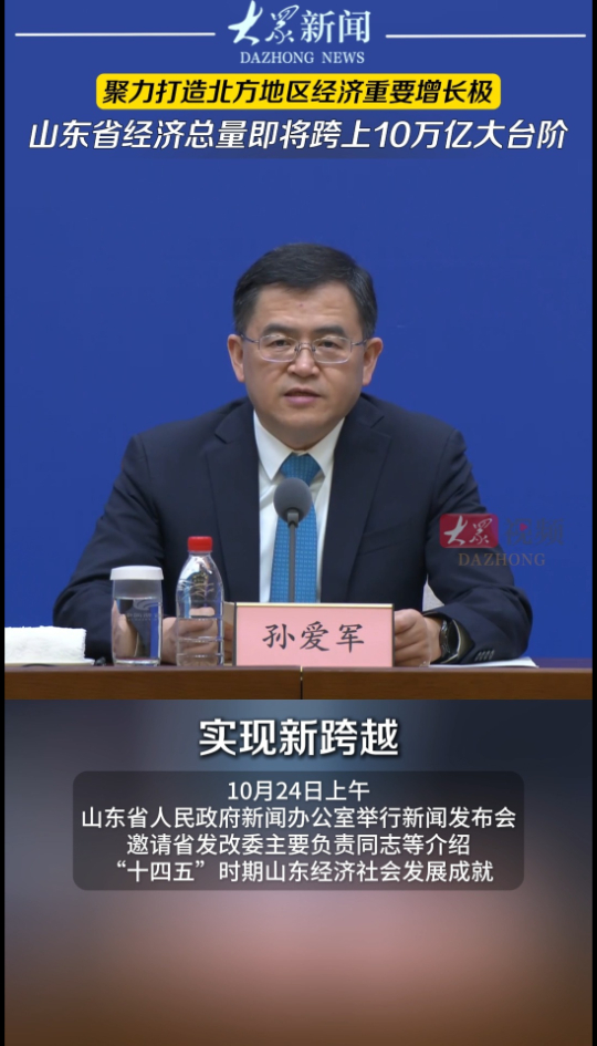 聚力打造北方地区经济重要增长极,山东省经济总量即将跨上10万亿大台阶大众新闻 | 2025-10-24 原创大众新闻 微信扫码扫码下载客户端10月24日上午,山东省人民政府新闻办公室举行新闻发布会,邀请省发改委主要负责同志等介绍“十四五”时期山东经济社会发展成就。(大众新闻记者 申家鑫 程文琪 策划 马玉峰 陈巨慧)