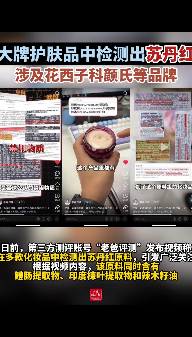 日前,第三方测评账号“老爸评测”发布视频称,在多款化妆品中检测出苏丹红原料,引发广泛关注。根据视频内容,该原料同时含有鳢肠提取物、印度楝叶提取物和辣木籽油。