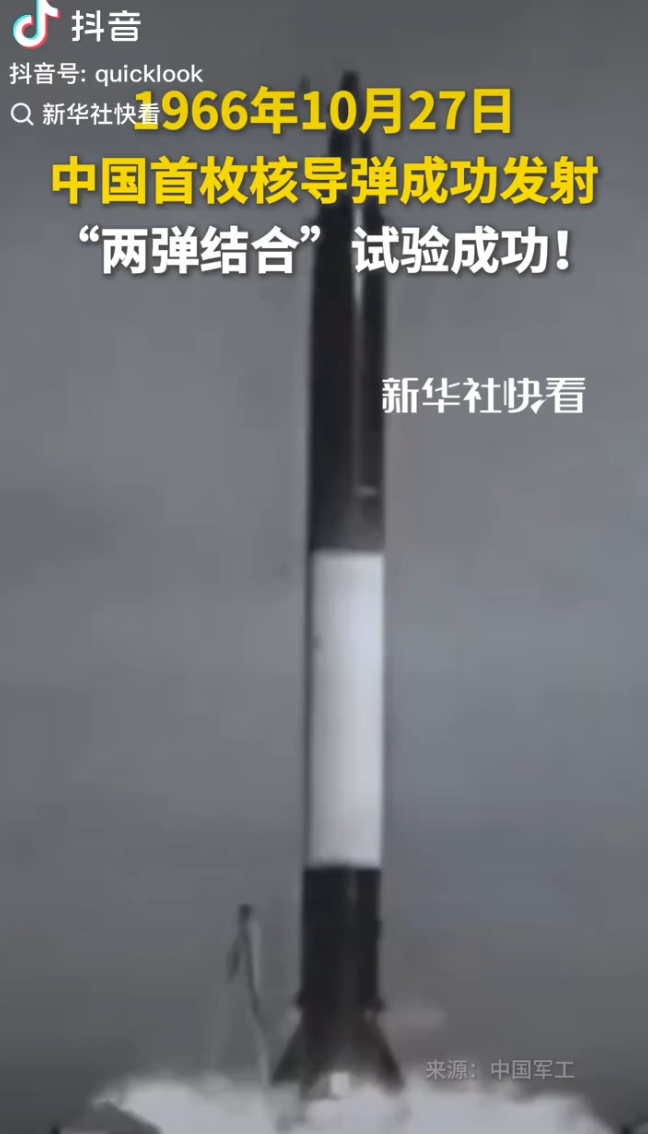 1966年10月27日,中国首枚核导弹成功发射,“两弹结合”试验成功!