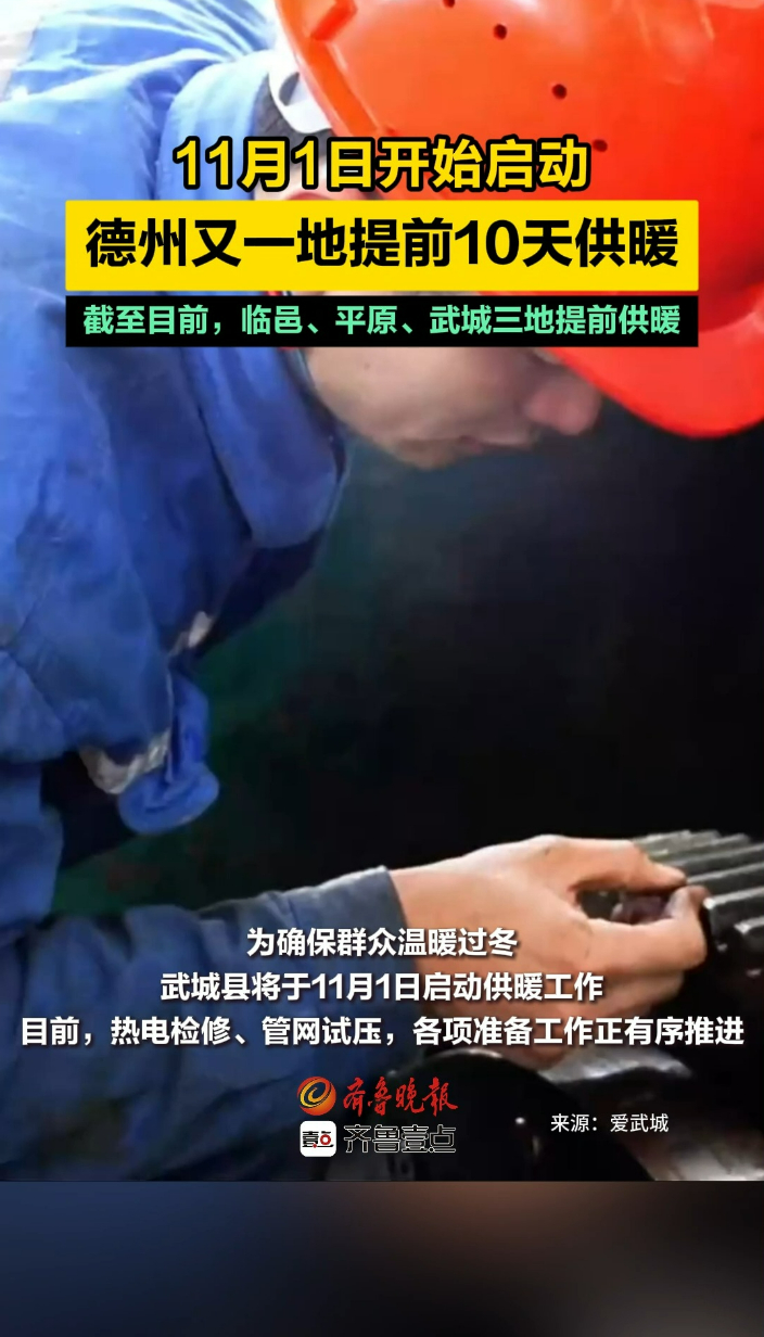 果然视频|11月1日开始!德州市三县提前10天供暖!齐鲁晚报·齐鲁壹点客户端 2025-10-28原创为确保群众温暖过冬,武城县将于11月1日启动供暖工作。截至目前,德州临邑、平原、武城三县提前供暖较法定供暖日提前10天 (齐鲁晚报·齐鲁壹点 魏巍)