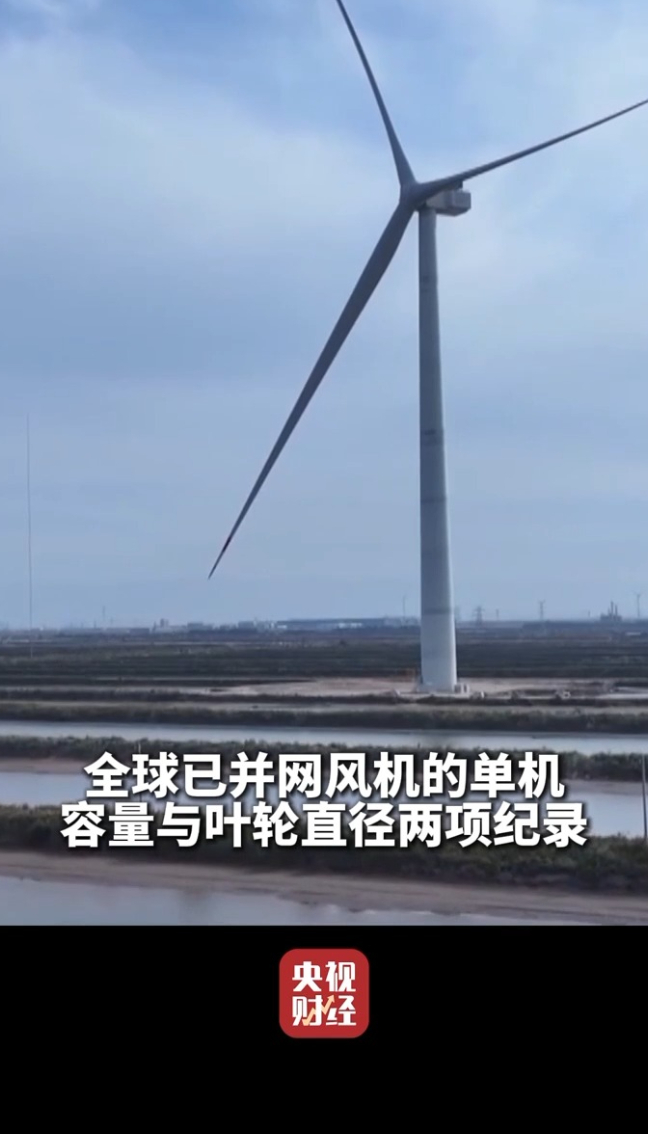 10月29日,我国自主研制的26兆瓦级海上风电机组在山东东营成功并网发电。这个海上风电机组,轮毂中心高度相当于50多层居民楼,设计叶轮直径超过310米,扫风面积超过10个半标准足球场,是目前全球单机容量最大、叶轮直径最长的海上风电机组,并且实现全国产化设计制造。