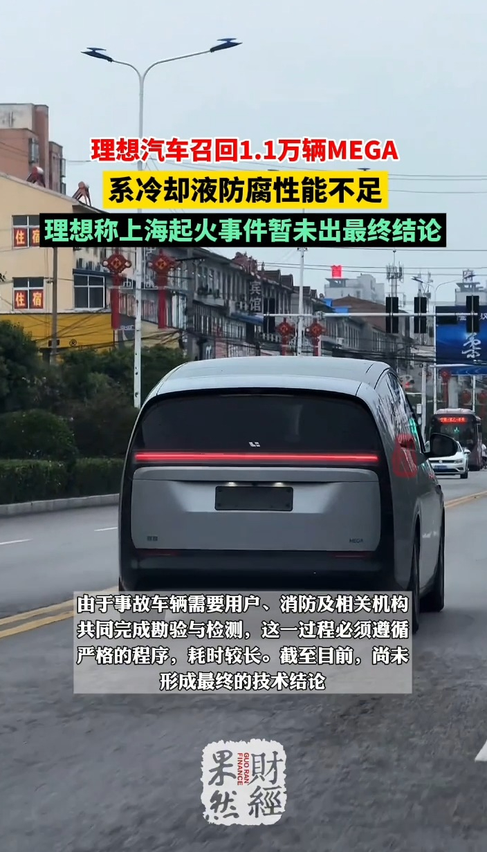 果然财经|理想汽车召回1.1万辆MEGA,称冷却液防腐性不足齐鲁晚报·齐鲁壹点客户端 2025-11-01原创红星资本局10月31日消息,国家市场监督管理总局公告,理想汽车(02015.HK/LI.US)拟召回1.14万辆2024款理想MEGA。召回原因显示:该批次车辆存在冷却液渗漏导致动力电池热失控的安全隐患
