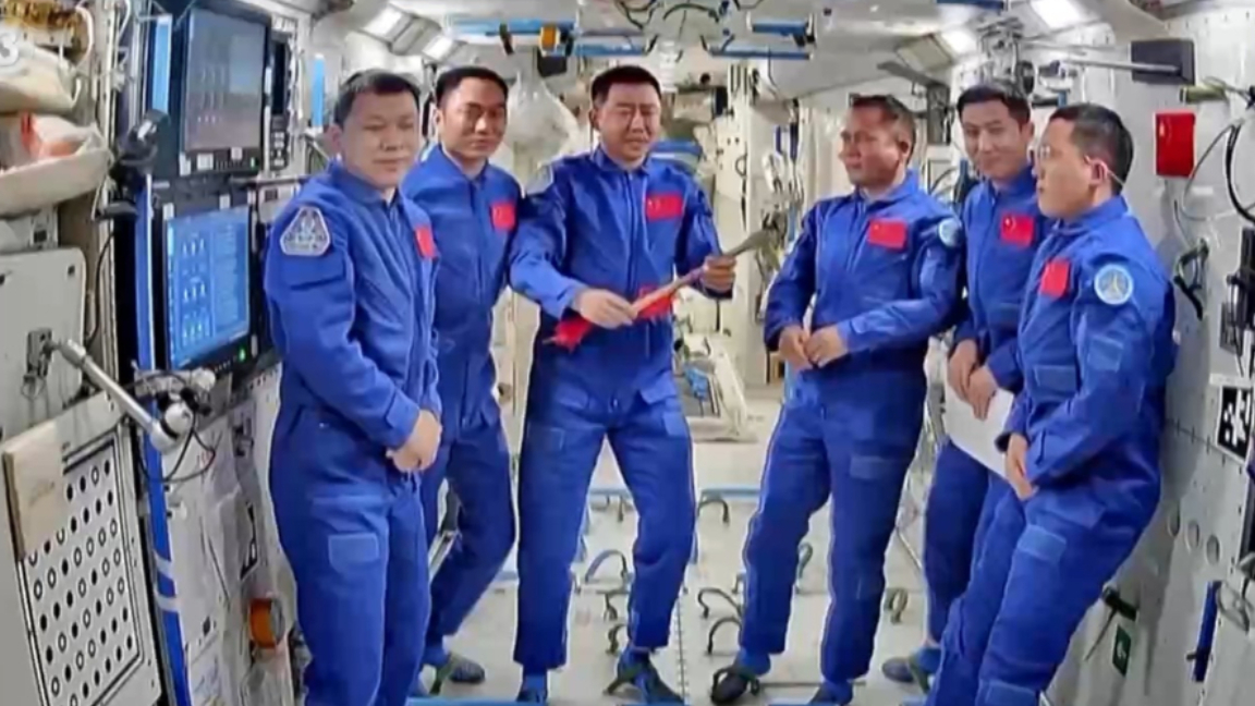 上午11时许,神舟二十号和神舟二十一号航天员乘组在中国空间站天和核心舱进行交接仪式,六名航天员分别在确认单上签字。随后,神舟二十号指令长陈冬将象征空间站的钥匙交给神舟二十一号指令长张陆。