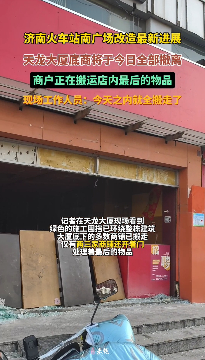 果然视频|天龙大厦拆迁新进展:部分底商店面已开拆齐鲁晚报·齐鲁壹点客户端 2025-11-04原创11月4日,记者获悉,随着济南火车站南场站综合配套建设(一期)项目的逐步推进,天龙大厦一层的经营商户将于今日全部搬离。记者在天龙大厦现场看到,绿色的施工围挡已环绕整栋建筑,大厦底下的多数商铺已搬走,仅有两三家商铺还开着门。(齐鲁晚报·齐鲁壹点 李梦瑶 见习记者 冯子芯)