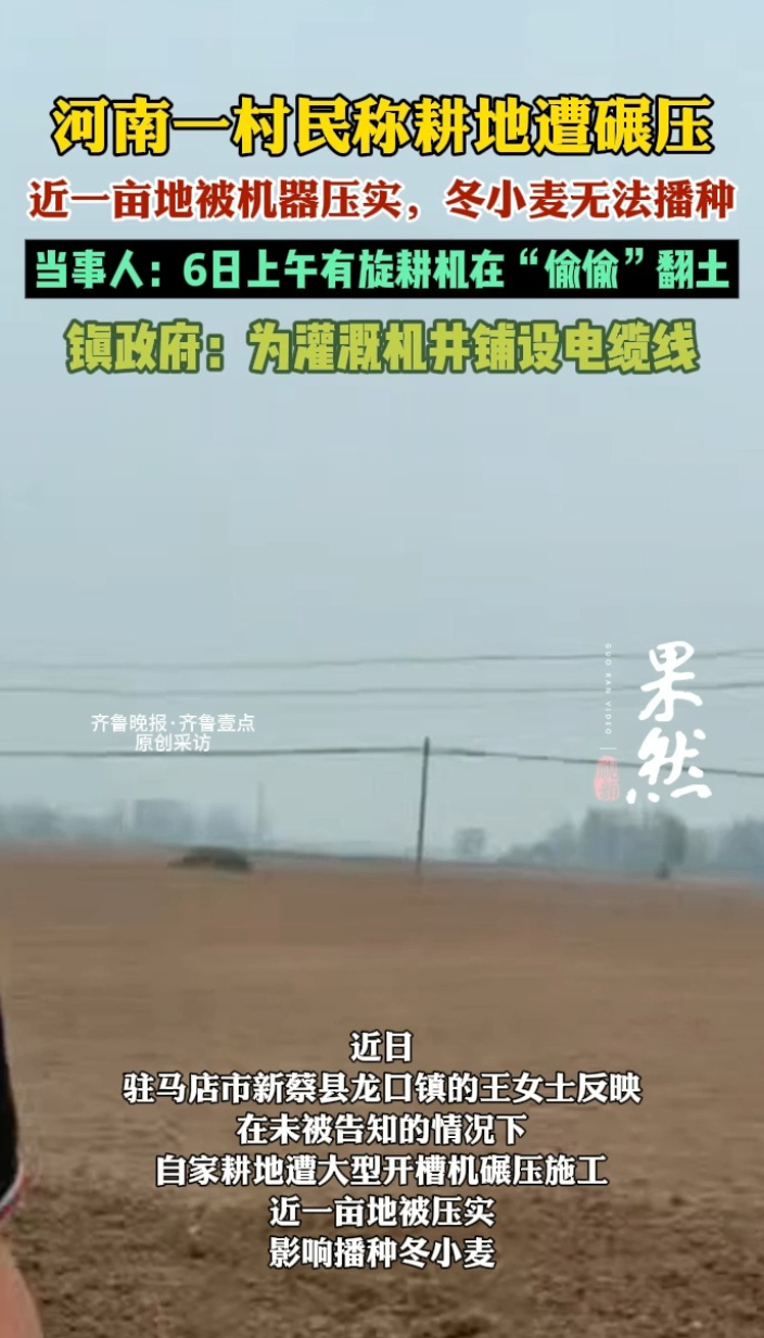果然视频|河南一村民耕地遭碾压,最新进展:有旋耕机进场翻土