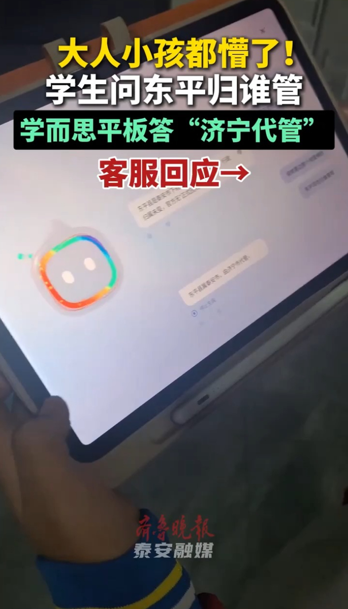 果然视频丨大人小孩都懵了!学生问东平归谁管,学而思平板答“济宁代管”,客服回应→