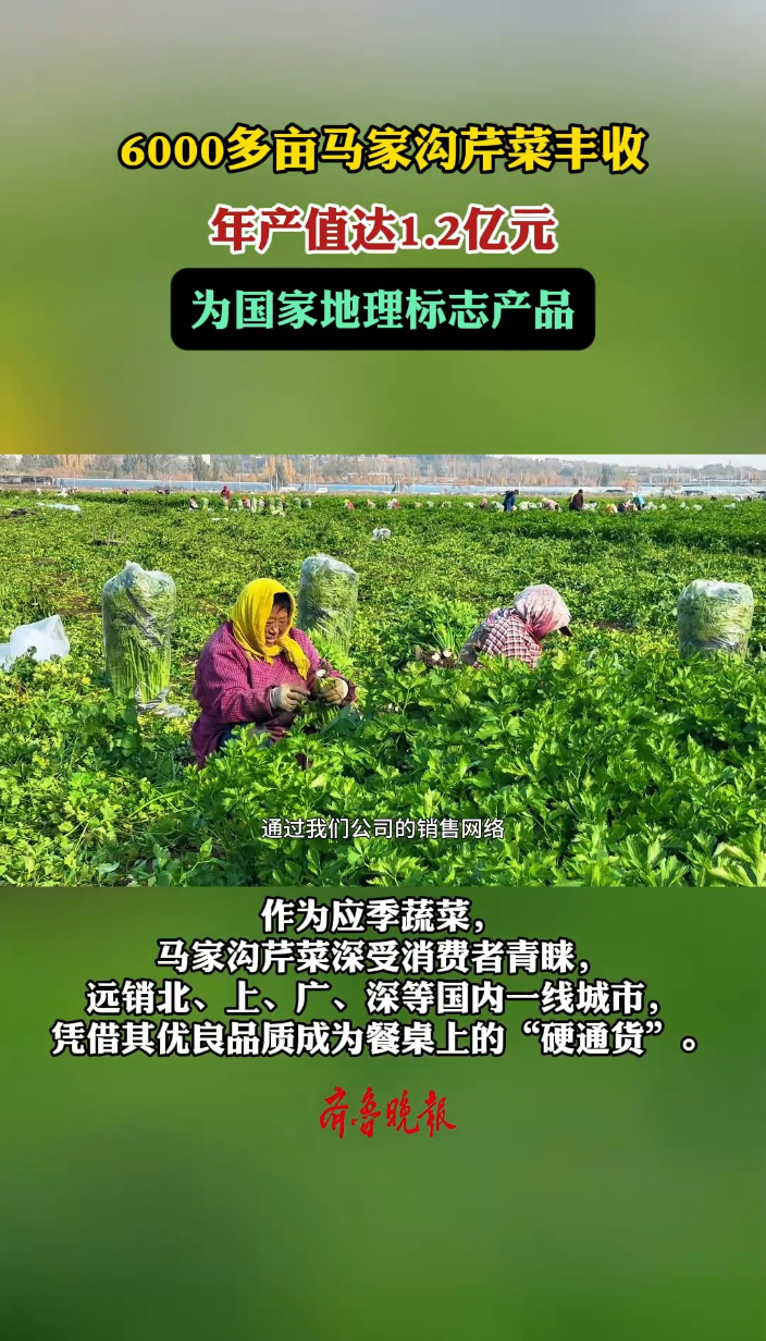 果然视频丨年产值1.2亿元!6000多亩马家沟芹菜丰收齐鲁晚报·齐鲁壹点客户端 2025-11-13原创作为国家地理标志产品,近年来平度市李园街道马家沟芹菜产业发展迅速,目前种植面积已达6000多亩,产量3000万公斤,年产值达1.2亿元。作为应季蔬菜,马家沟芹菜深受消费者青睐,远销北、上、广、深等国内一线城市,凭借其优良品质成为餐桌上的“硬通货”。(齐鲁晚报•齐鲁壹点 刘震 通讯员 舒晗 嘉山)