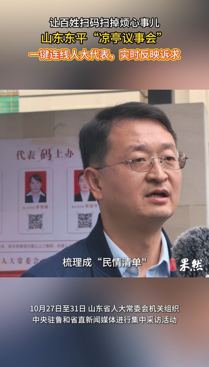 果然视频|“凉亭议事会”开到家门口,人大代表“码”上办 2025-11-14 原创齐鲁晚报·齐鲁壹点客户端 微信扫码扫码下载客户端在泰安市东平县,遍布城乡的12个“凉亭议事会”,犹如设在百姓家门口的“民意直通车”——只需手机扫描小区凉亭内的专属二维码,就能一键连线人大代表,实时反映诉求。(记者杨璐 实习生李敏)