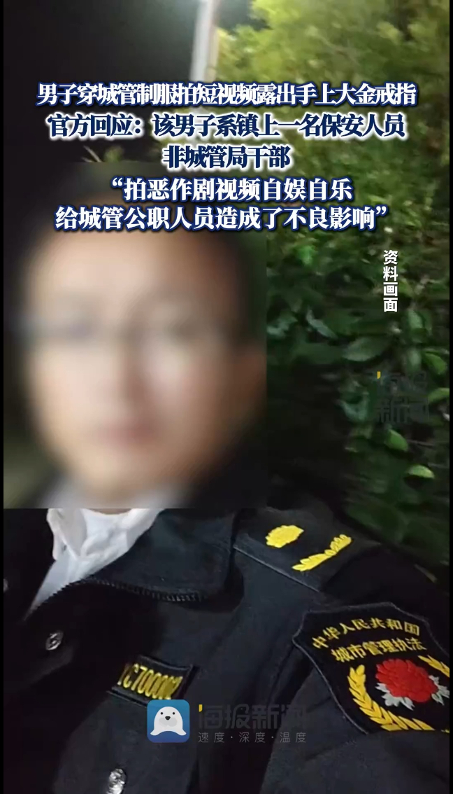 男子穿城管制服拍短视频、露出手上大金戒指,官方回应:该男子系一名保安