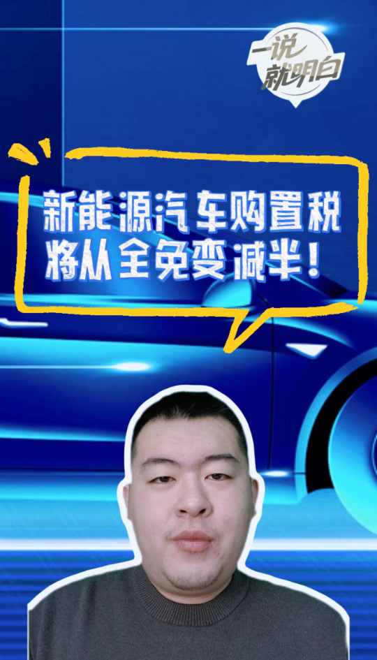 一说就明白|新能源汽车购置税,将从全免变减半! 2025-11-15 原创大众新闻 微信扫码扫码下载客户端还有一个半月,新能源汽车购置税新政就要实施了!明年1月1日起,新能源汽车购置税,将从全免变减半征收。这意味着,想买新能源车的小伙伴们可能要多花一笔钱了。省钱倒计时,一说就明白。拍摄、脚本:刘宸剪辑:刘宸、董方舟