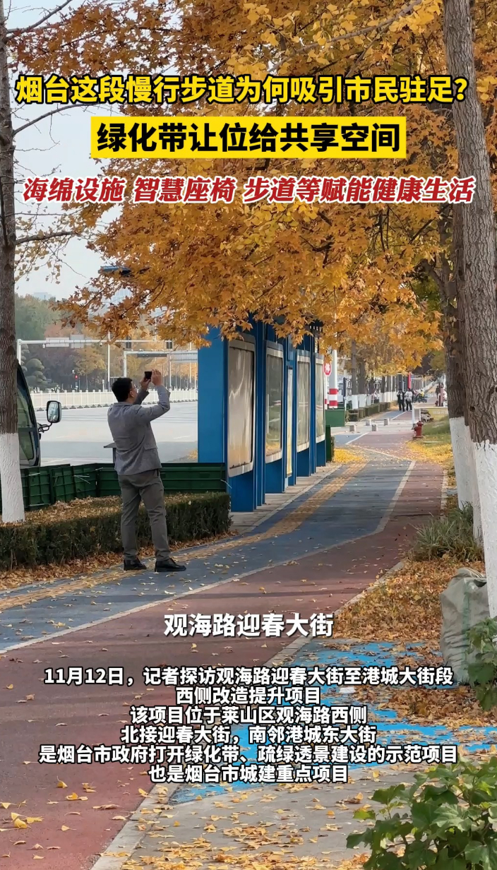 果然视频|烟台这处慢行步道为何引人驻足?绿化带让位给共享空间齐鲁晚报·齐鲁壹点客户端 2025-11-15原创近日,记者探访观海路迎春大街至港城大街段西侧改造提升项目,该项目位于莱山区观海路西侧,北接迎春大街,南邻港城东大街。项目改造完成后,绿化带让位给共享空间,增设海绵设施、智慧座椅、步道等赋能市民健康生活。(齐鲁晚报·齐鲁壹点 杜晓丹)