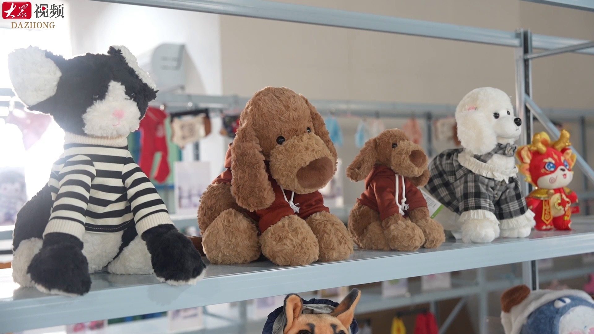 在曹县安蔡楼镇宠物服饰生产车间里,记者看到工人们正忙碌地裁剪、缝纫,一派热火朝天的景象。货架上,各式各样的宠物外套整齐排列,每一件都设计精巧、各具特色。
