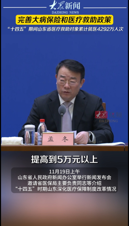 完善大病保险和医疗救助政策,“十四五”期间山东省医疗救助对象累计就医4292万人次大众新闻 | 2025-11-19 原创大众新闻 微信扫码扫码下载客户端11月19日上午,山东省人民政府新闻办公室举行新闻发布会,邀请省医保局主要负责同志等介绍“十四五”时期山东深化医疗保障制度改革情况。(大众新闻记者 申家鑫 姜倩 策划 马玉峰 陈巨慧)