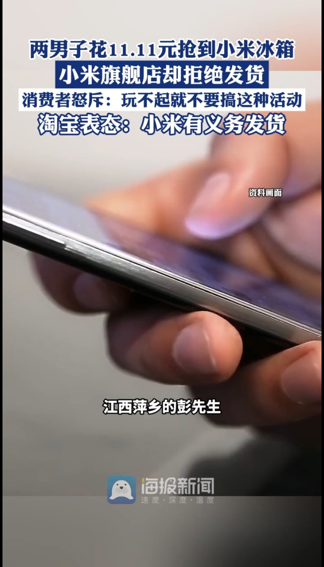 主播说丨两男子花11.11元抢到小米冰箱,小米旗舰店却拒绝发货,淘宝表态:小米有义务发货