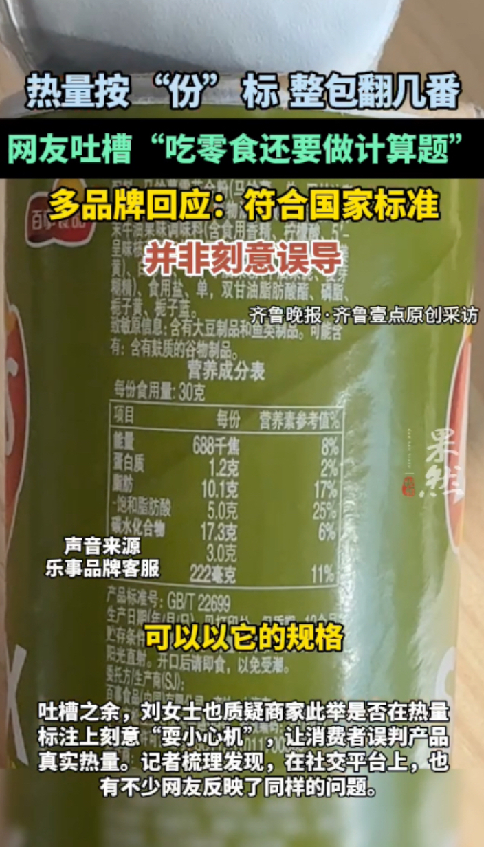 果然视频|热量按“份”标,整包翻几番!零食包装上的“计算题”你算明白了吗?