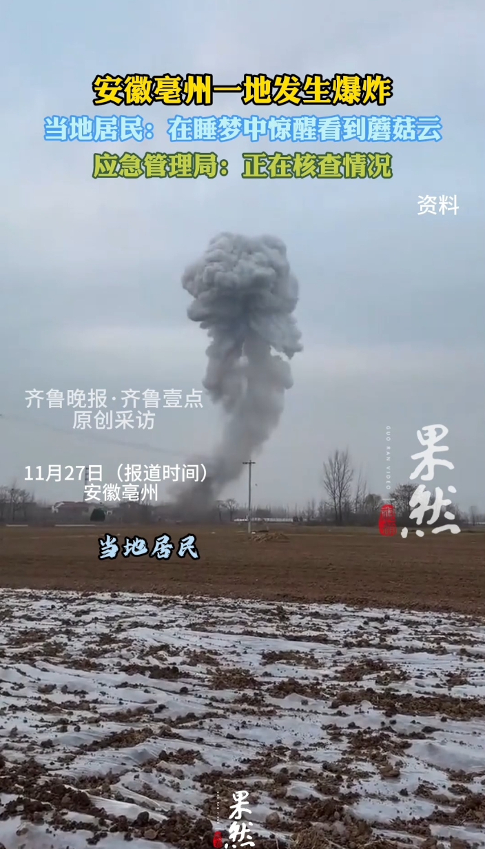 近日,安徽亳州一地发生爆炸事件,引发关注。27日,当地一居民向齐鲁晚报·齐鲁壹点记者透露,此次爆炸系当地处理烟花爆竹时发生意外所致。“我当时正在睡梦中,爆炸声特别大,被惊醒后就看到了蘑菇云。”
