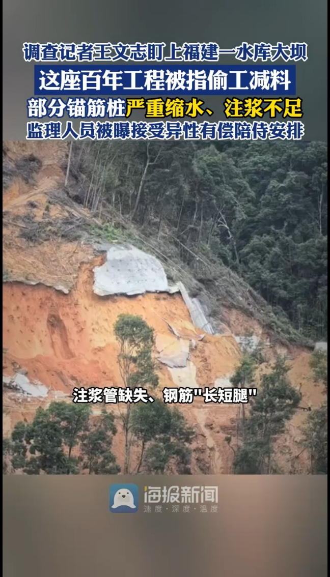 主播说丨调查记者王文志盯上福建一水库大坝,这座百年工程被指偷工减料,部分锚筋桩严重缩水、注浆不足