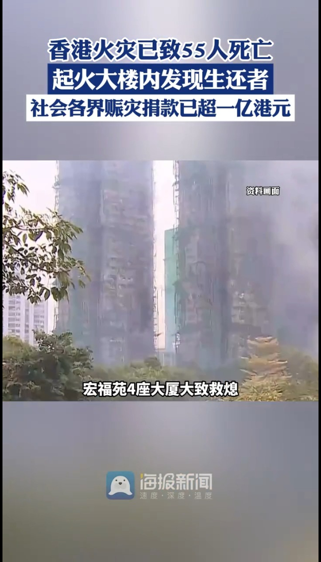 主播说|香港火灾已致55人死亡,起火大楼内发现生还者