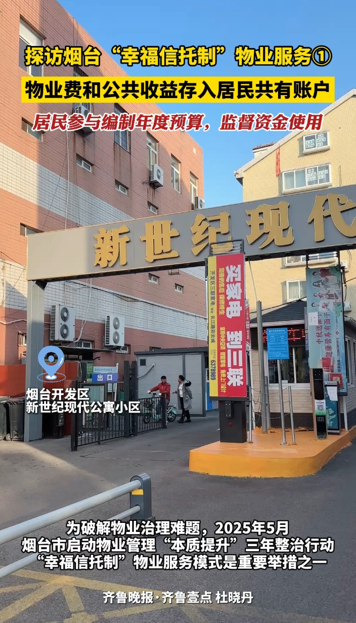 烟台幸福信托制物业探访①物业费存共有账户,居民监督资金使用齐鲁晚报·齐鲁壹点客户端 2025-11-28原创为破解物业治理难题,2025年5月烟台市启动物业管理“本质提升”三年整治行动,“幸福信托制”物业服务模式是重要举措之一。11月26日下午,“信托赋能幸福烟台·创新共建美好家园”烟台市幸福信托制实践成果媒体探访行,来到开发区新世纪现代公寓小区。(齐鲁晚报·齐鲁壹点 杜晓丹)